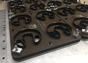 Through the result of shrinkage in the sheet as it progresses to the trim station, knives that are in a fixed position are more likely to produce an inconsistent trim register. Sharples’ multiple mounting options for floating and locating your die will assist in producing consistent parts throughout your mold layout. Floating dies, whether with a retainer or counterbored die base, will work well with the multiple locating options machined locators, laser-cut rings, milled pockets or cone locators. Sharples can help locate your formed parts and produce a consistent flange. Predicting shrinkage is based on layout, material and sheet progression. Every formed part and job can be different, having experience with different layouts and tooling options are what separates Sharples from our competitors.